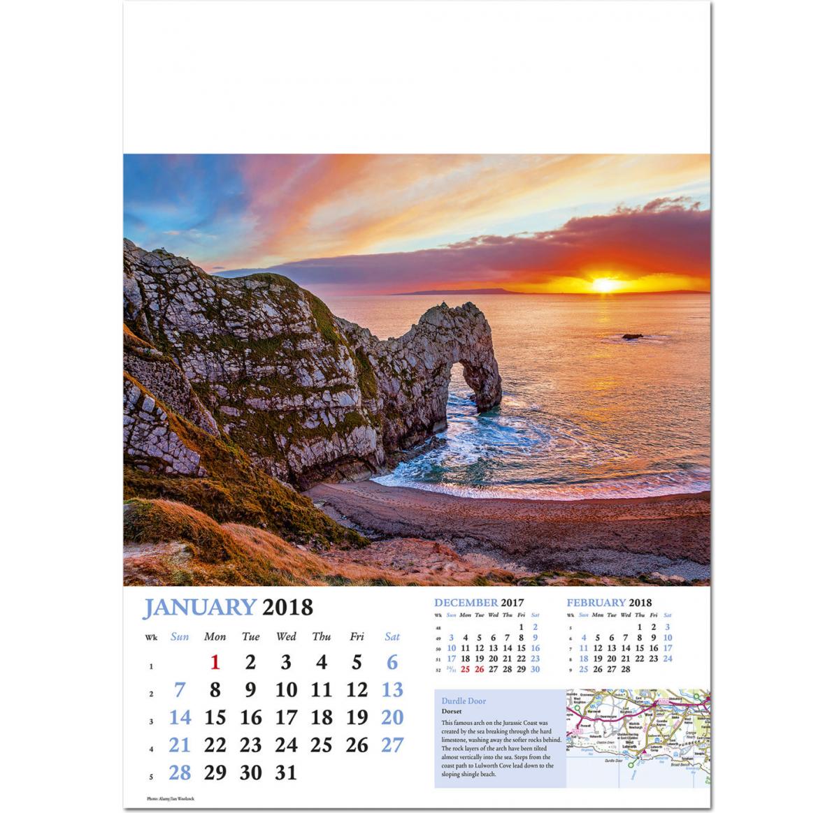 13 leaf pictorial wall calendar with glorious colourful British countryside and coast scenes