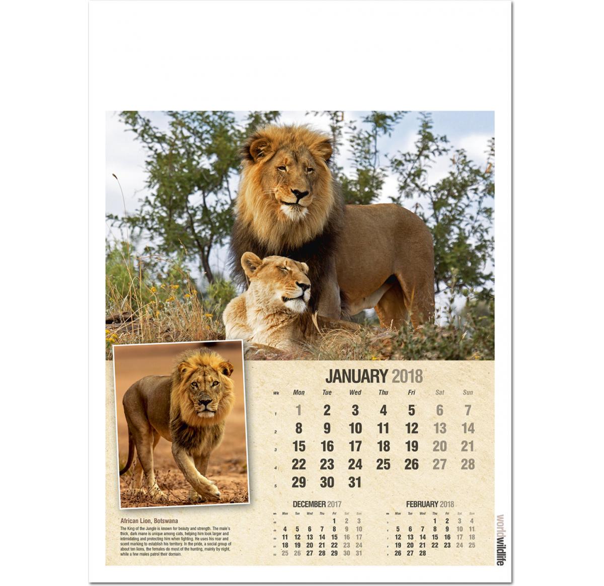 13 leaf pictorial wall calendar with outstanding photos of world wildlife