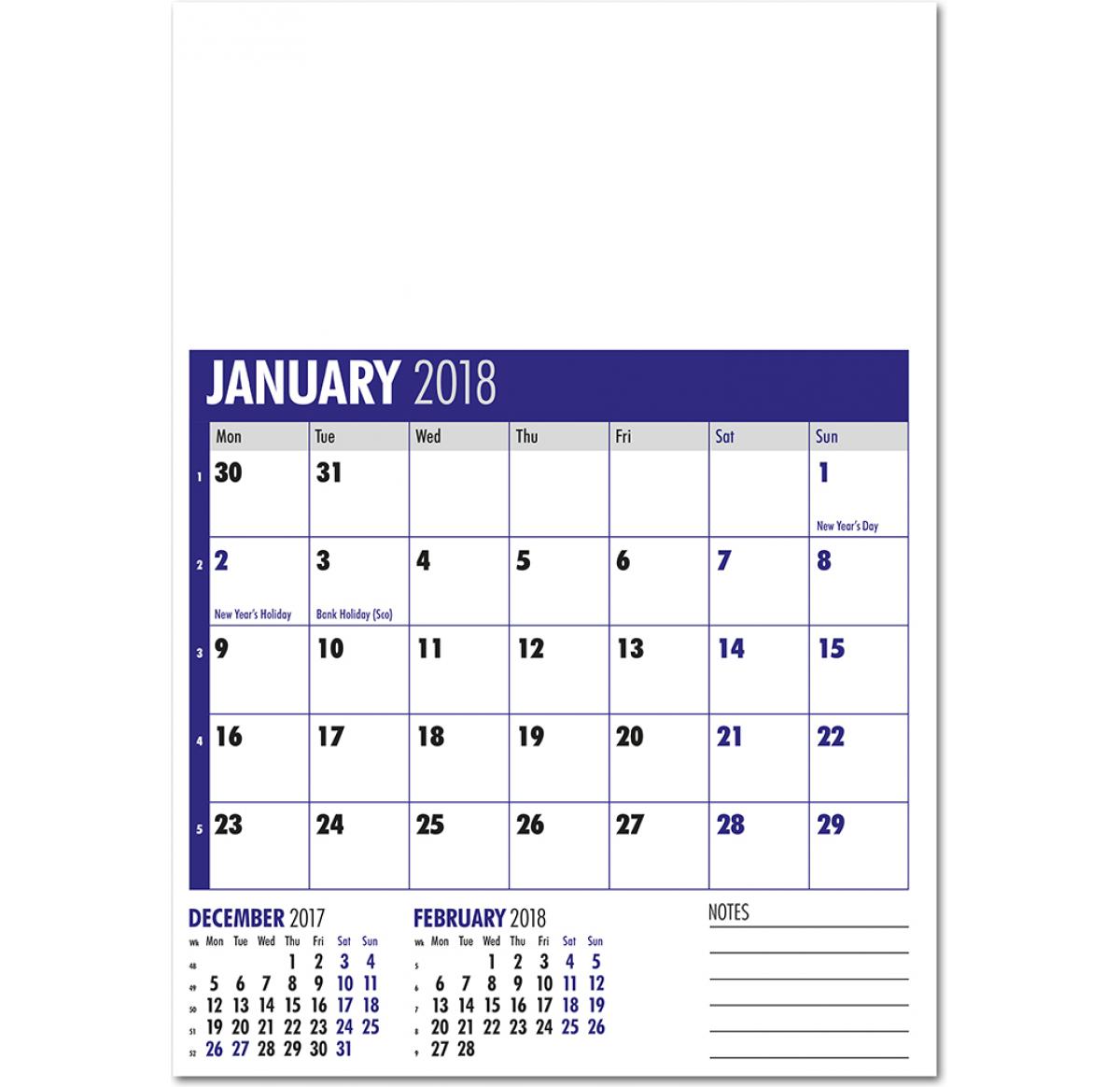 12 leaf wall calendar, easy to read and spce to write printed in blue and black