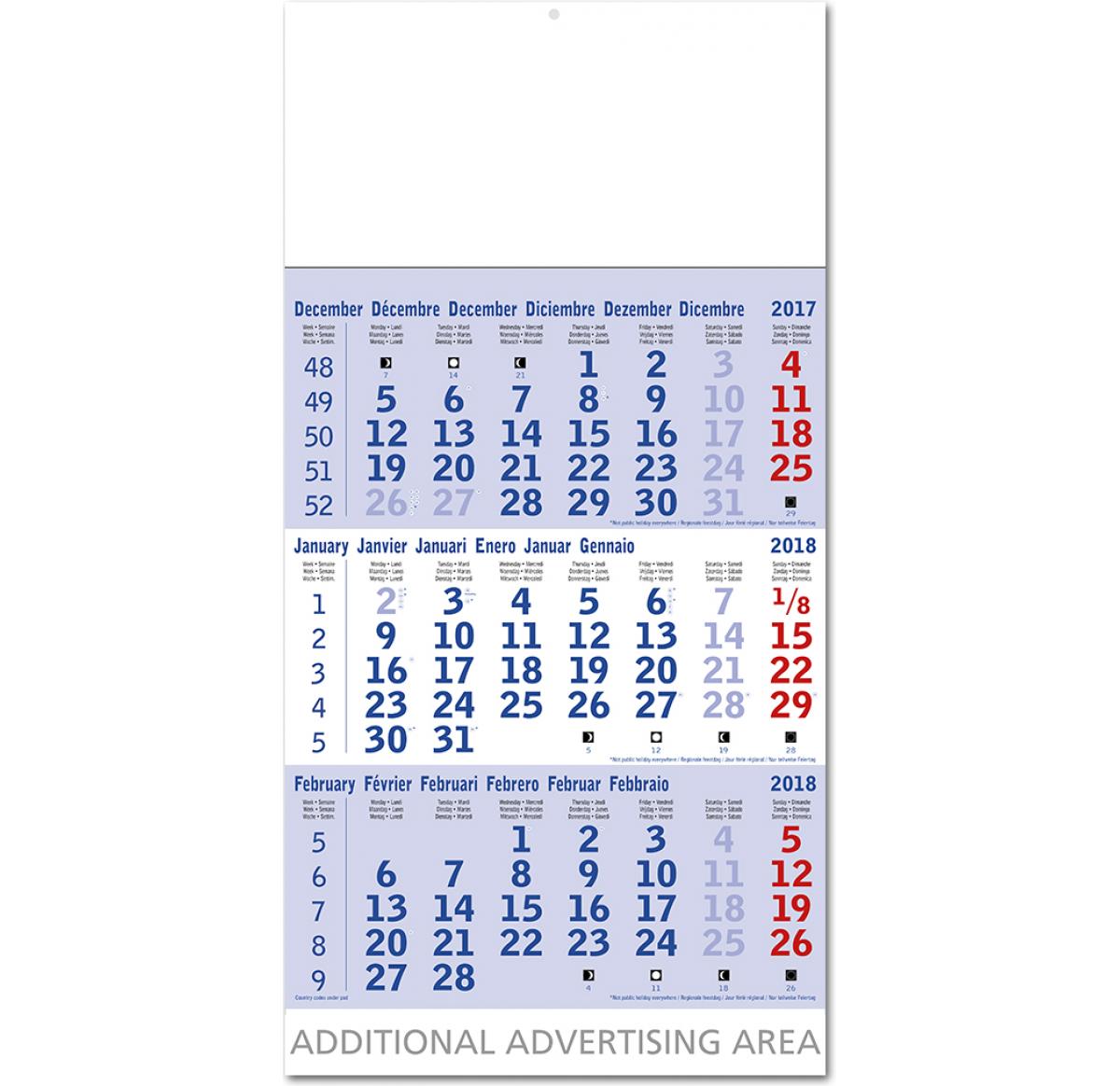 Shipping calendar with three months to view and two advert areas, three separate date pads and sliding cursor