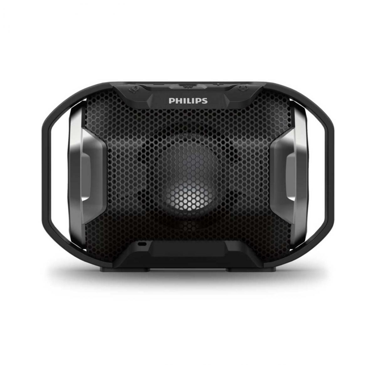 Get ready to unleash the beats! Philips Shoqbox SB300 cranks out explosive, pumping bass through twin bass radiators. Amp up the energy with lights that pulse to the beat. Rugged, shockproof and waterproof - take the party anywhere.