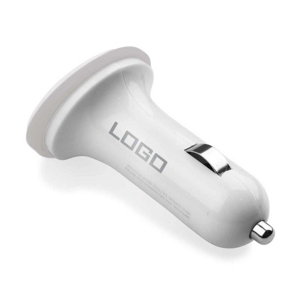 A twin port USB CarCharger (2.1A) ideal for smartphones, most USB gadgets and iPads™/most Tablet PCs. This charger has two USB ports, so you can charge two USB rechargeable devices simultaneously. Take your logo with you wherever you go!