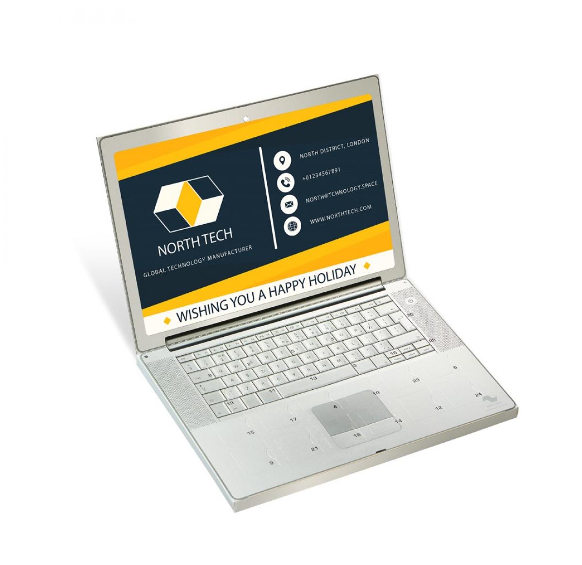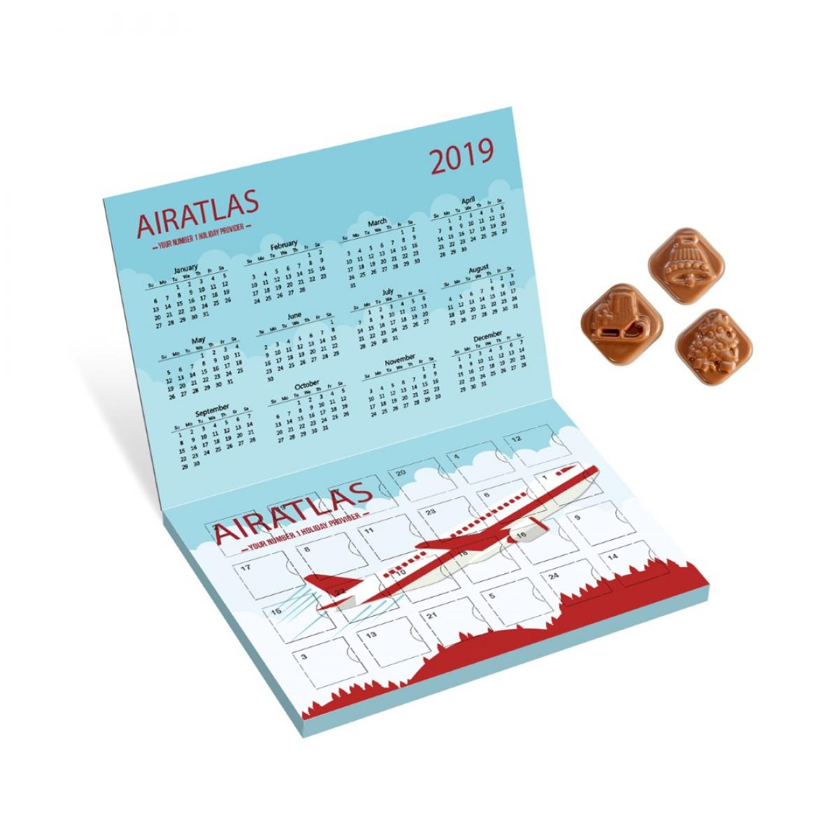Flip Top Classic Advent Calendar - Fully brandable with you logo and festive messages, utilise the extra space for a calendar or company information- This advent comes filled with 24 festive shaped chocolate squares (random)