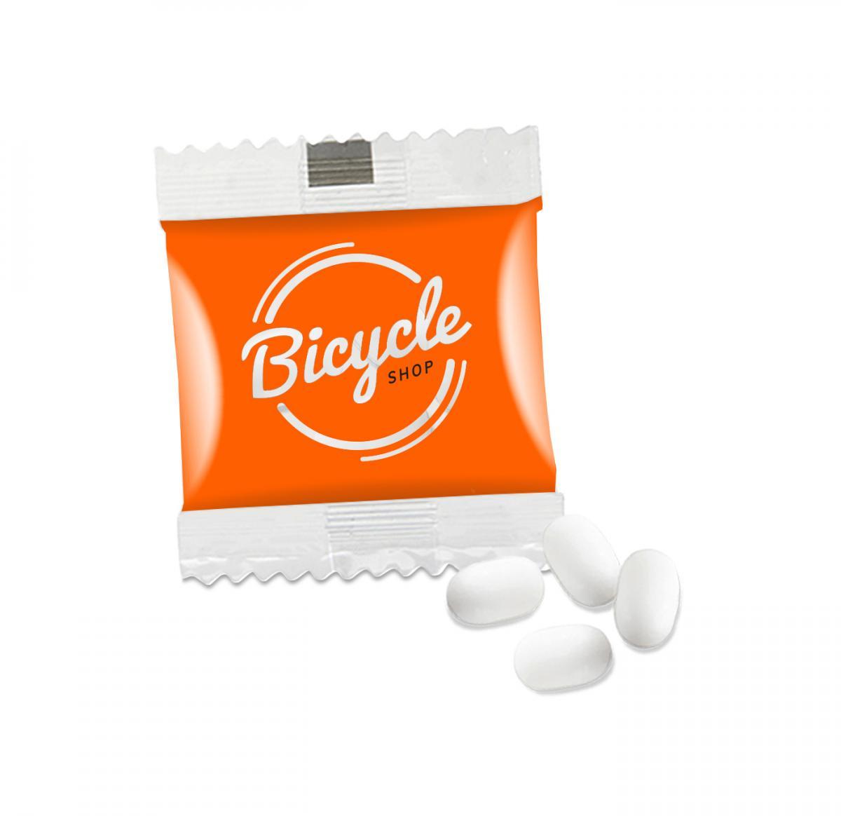 A Shiny or matt coated, transparent or white flow bag filled with TicTac Fresh Orange.