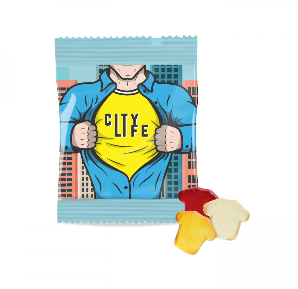 - A customised fruit gum in the shape of whatever you want! Contains 10 % fruit content from fruit juice concentrate, natural aroma and colouring plant extracts in a variety of colours and flavours.- Each fruit gum is approx 1.3g.- Packed in a Shiny or Ma