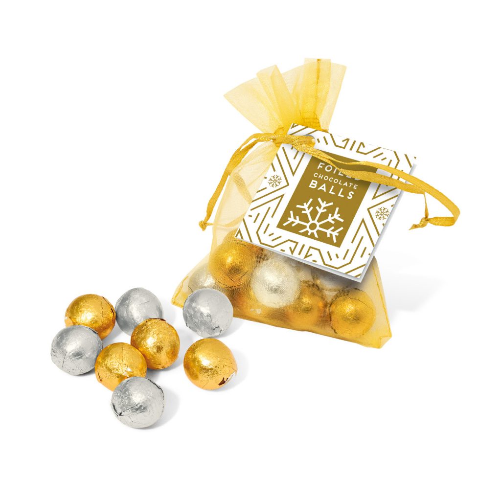 Branded Christmas Organza Bag - Foiled Chocolate Balls