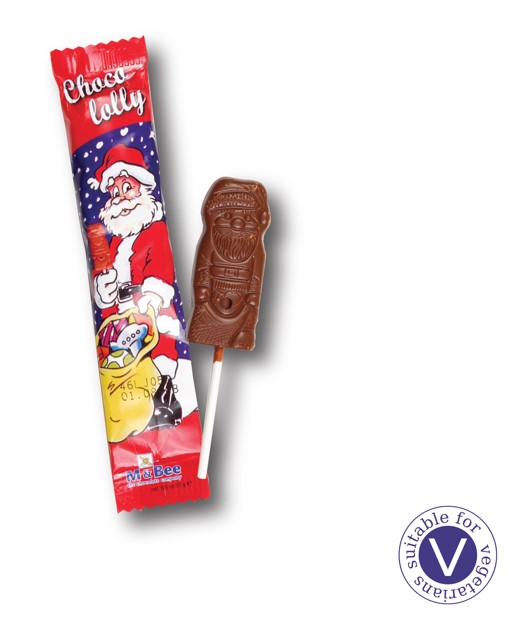 Individually wrapped milk chocolate Santa lollies.
