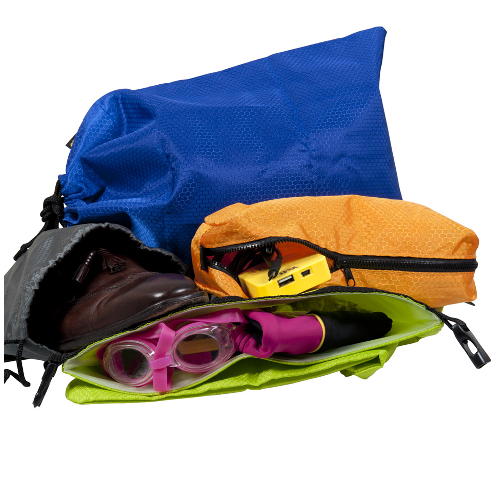 Keep your shoes/boots protected to avoid scuffs and scratches, your gym/swim kit in an innovative WATER TIGHT SEALED bag, your laundry separated and no more rifling through your luggage to find your charger and cables. AND All this comes neatly packed in an Airport security compliant wash bag - you do not need anything else to ensure you are organised and arrive ready to go!