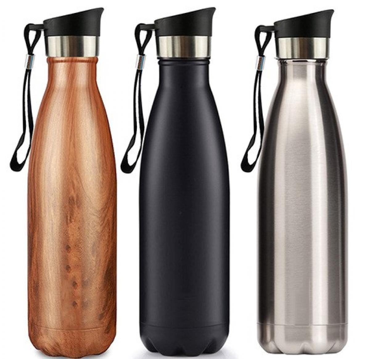 Chilly / Swell style stainless steel 500ml insultated metal water bottle with flip lid and carry handle.