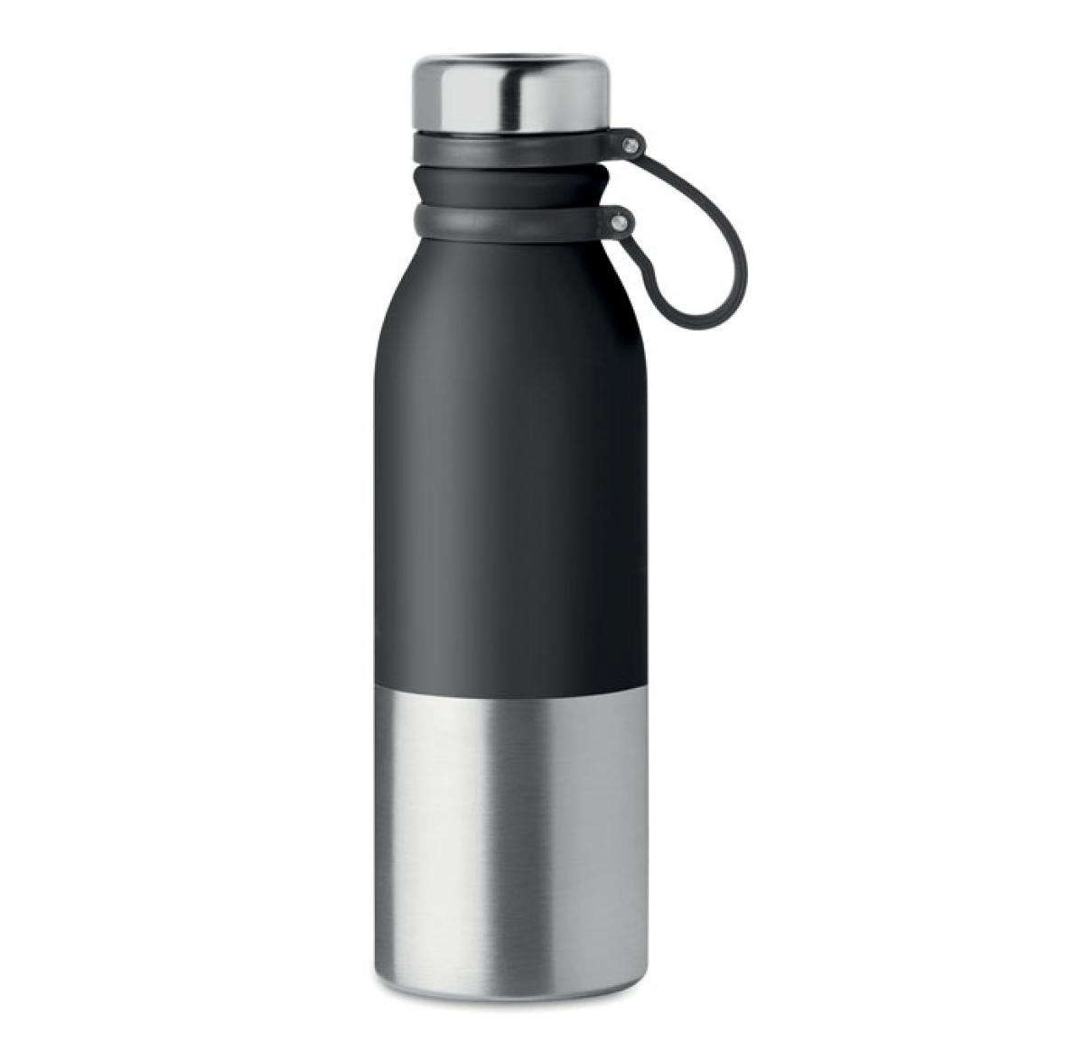 Double walled stainless steel powder coated water bottle with carry loop, can be laser engraved or printed with your branding