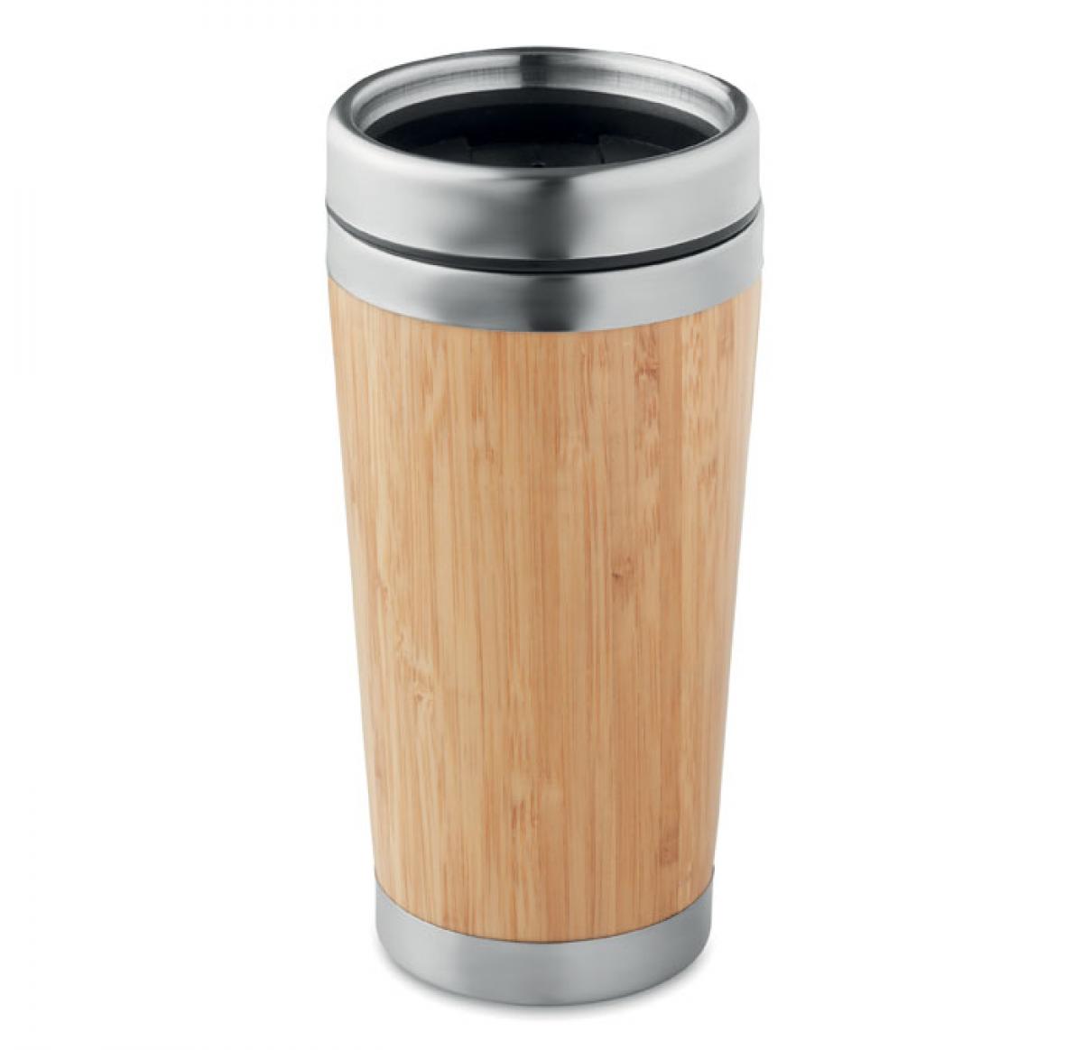 Bamboo Finish Stainless Steel Double Wall Travel Cup 400ml