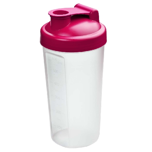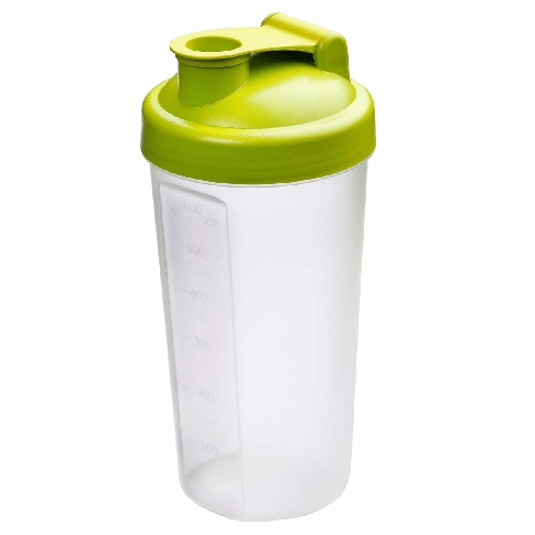 Transparent protein shaker with embossed scale down the side - holds 600ml - available in several different colou options, either clear body or grey body.