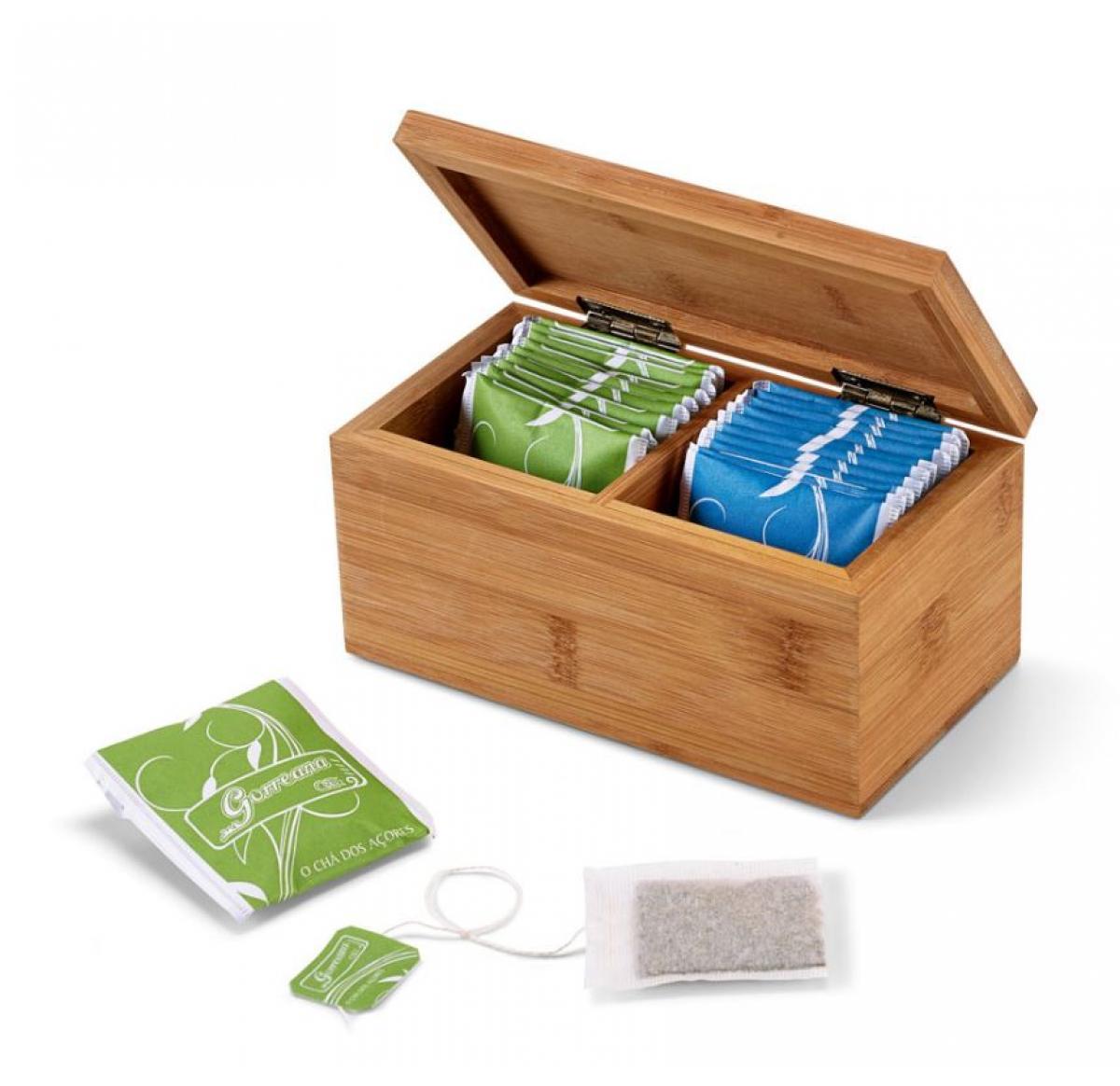 Wooden Tea Bag Organiser Bamboo Two Compartments Includes 20 Tea Bags Azorean Tea
