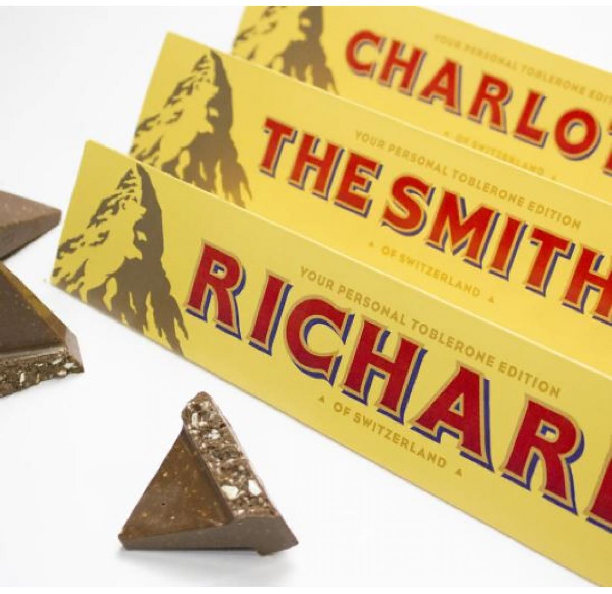 What better way than to reward your friends and colleagues than with a personalised toblerone bar - somply delicious chocolate. These 100g bars have an outer sleeve that can be personalised with your company name and logo or individual names - the choice is yours.