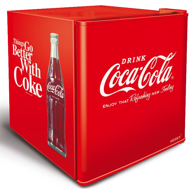 This 1960s Retro inspired Coca-Cola Mini Fridge combines the iconic glass contour bottle with the wording: Things go better with Coke. The Mini Fridge features an adjustable thermostat that keeps your food and drinks ready on demand. It is compact size ensures that it will look great in any room of the house. Yet it is also capable of holding 40 cans of your favourite drink and is food and dairy safe, making it ideal for students or anyone living in a smaller space.