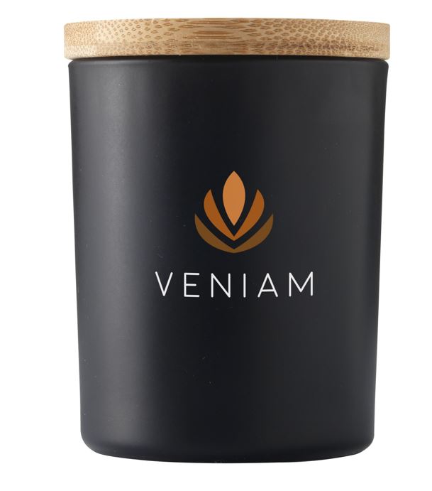 Branded Candles Vanilla Scented Black Glass Bamboo Lid