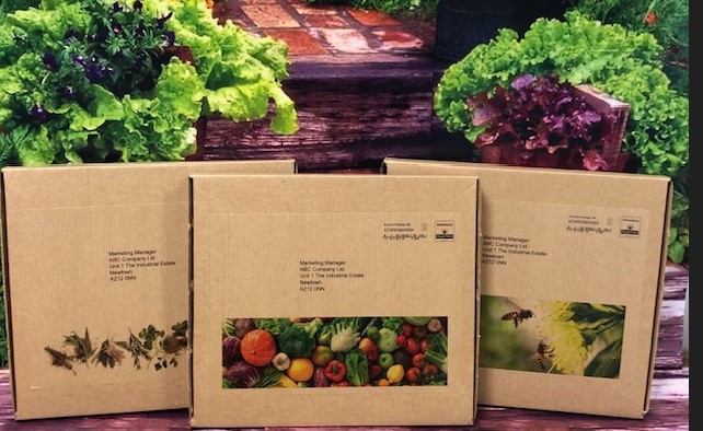 A complete seed starter kit small enough to be sent as a Royal Mail Letter. Recycled kraft mailer is personalised with 4-col printed label and contains: 3 pop-up flower pots, 3 seed packets, 3 Cocopress® compost tablets, 3 plant labels, pencil and sowing instructions