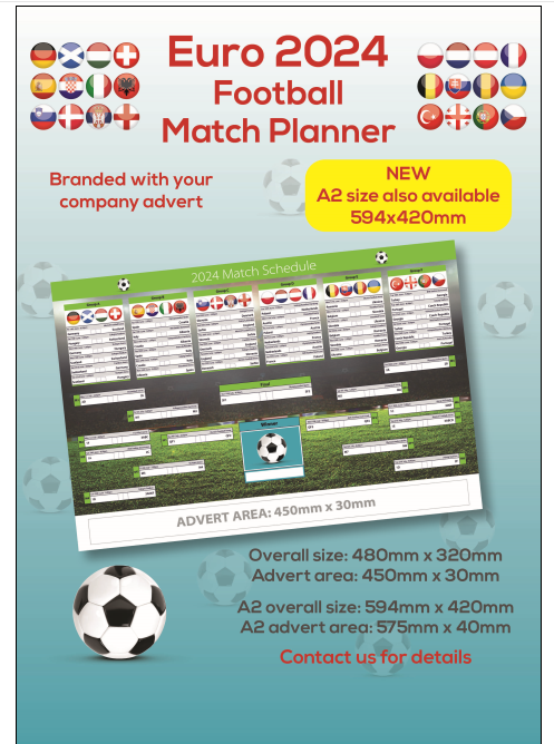 Euro 2024 Football Championship A4 Wall Chart Planners Custom Logo