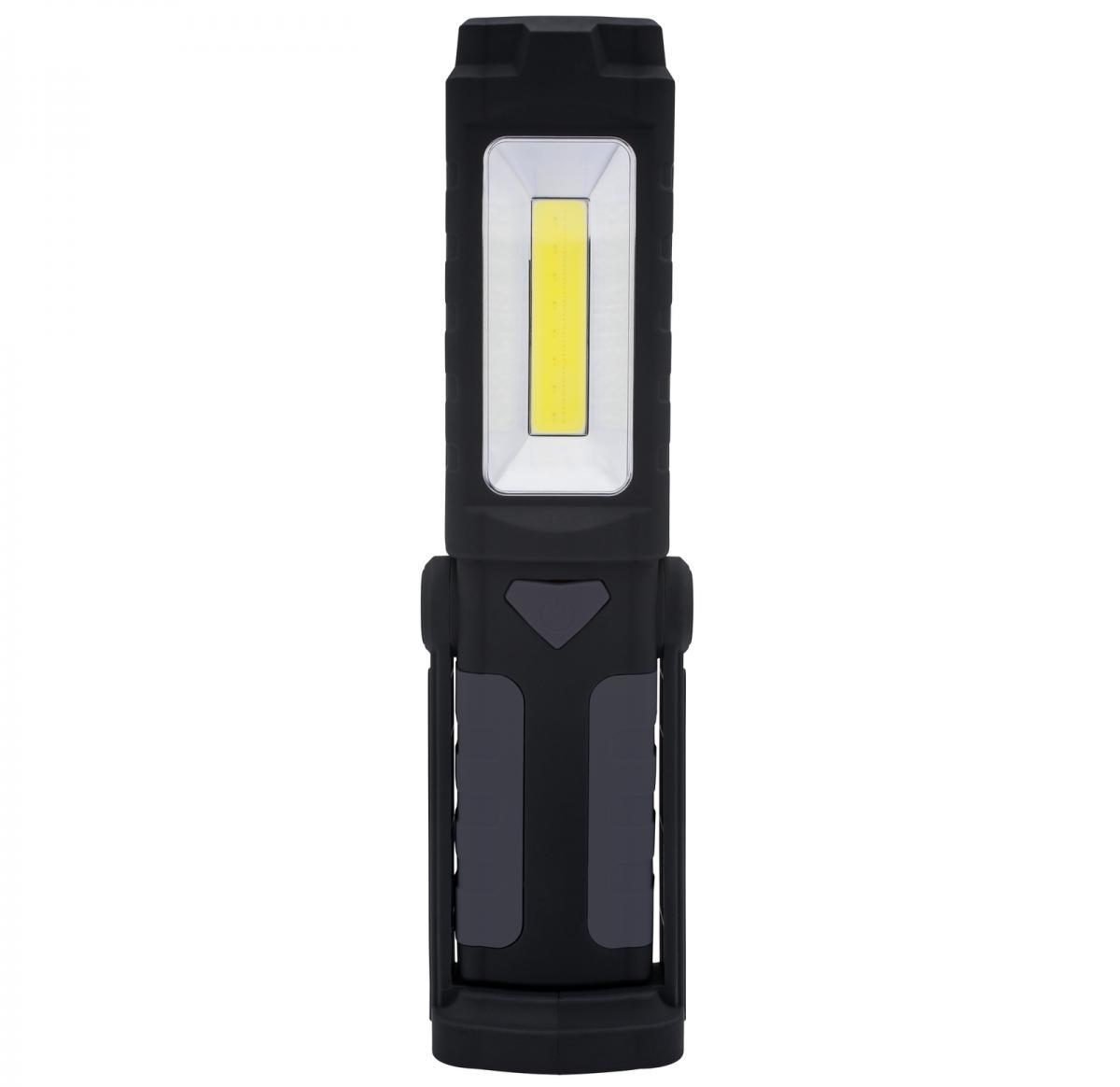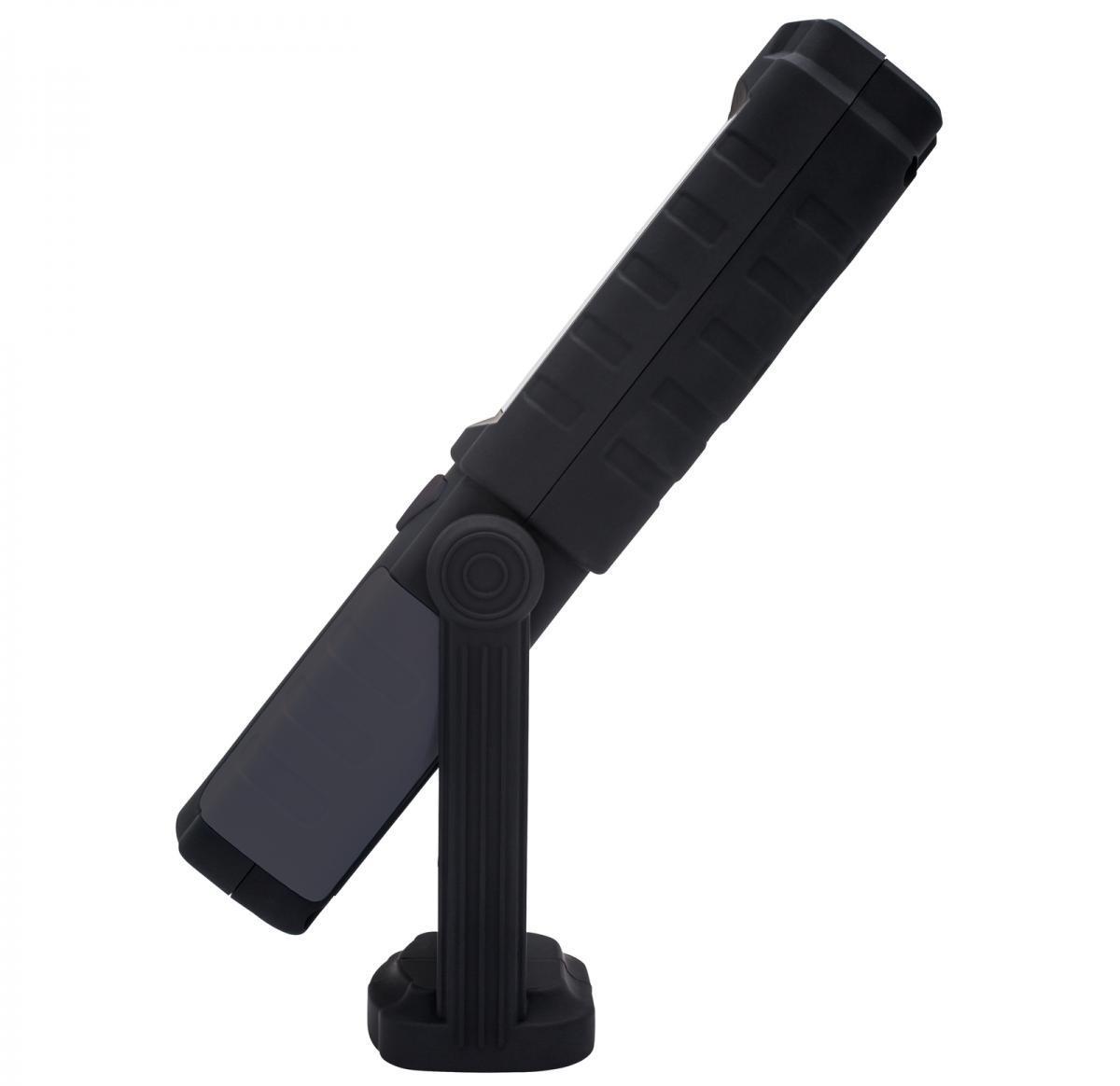 Perfect on the road or at home: work light with COB LED, adjustable, with magnet for attaching it to metal surfaces, hanger, torch (3 watt, 80 lumen), front light (3 watt, 180 lumen) and flashing warning function (3 watt, 30 lumen) in red.