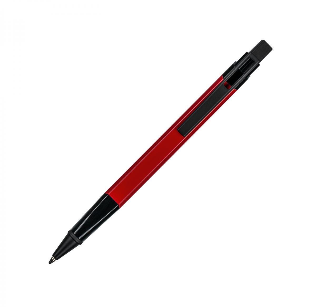 aluminium, metal, plastic, red, ballpen with blue ink, german ink, polybag