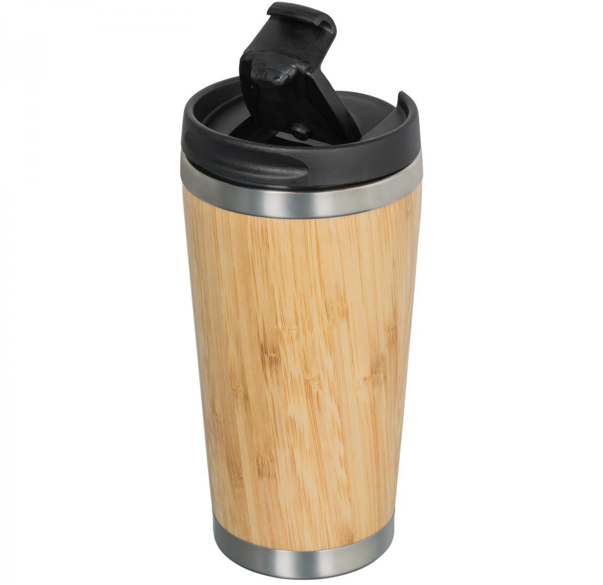 Laser engraving is especially eye catching on this insulated cup made of sustainable bamboo. It has double walls and a drinking aperture that can be closed. Capacity: 350 ml