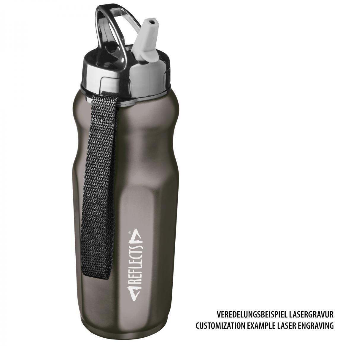 The drinking bottle made of stainless steel has a fold-out mouthpiece, which makes their handling especially during sports very pleasant. With practical wrist strap. Capacity: 800 ml