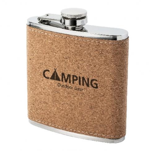 The visually appealing hip flask with cork coating is a welcome sight on long hikes, while playing football or when attending Carnival. The cork surface looks very stylish and elegant with laser engraving. Capacity: 170 ml.