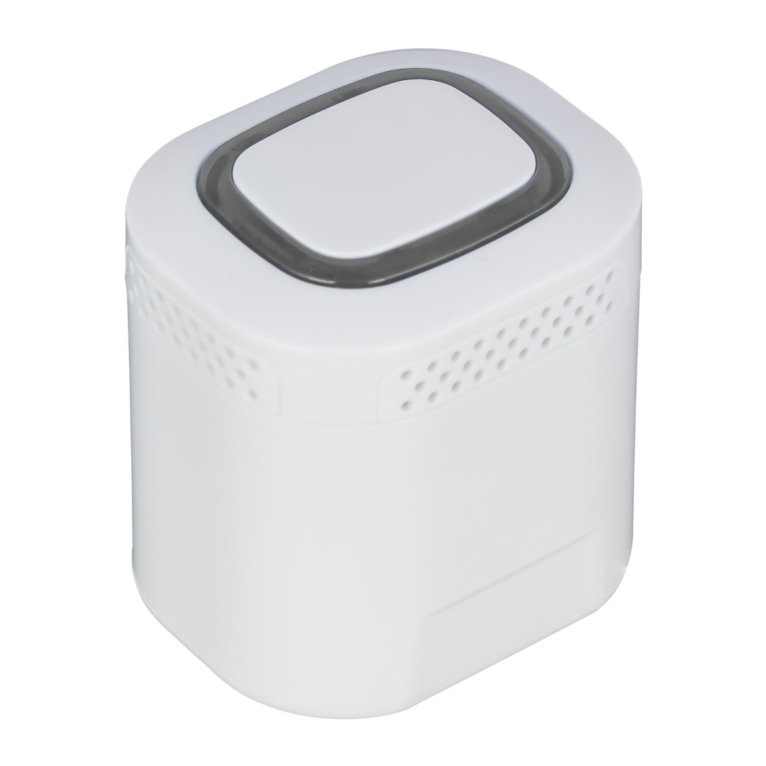 This small Bluetooth® Technology 4.1 speaker offers excellent sound quality (range approximately 10 meters). It can be controlled by your Smartphone completely or an audio device connected to it. The play time is up to 4 hours. It can be attached to your keychain using the ring. It comes with a 2-in-1 charging cable that can be used as a link to an audio device via its 3.5 mm jack. It has 2 watts output power. The colour ring around the logo plate is illuminated by LED backlight.