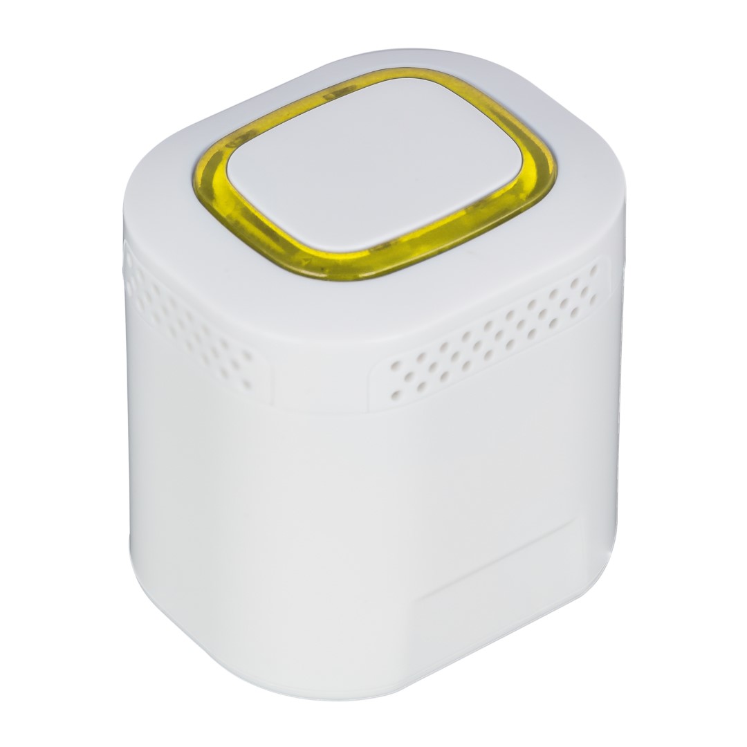 This small Bluetooth® Technology 4.1 speaker offers excellent sound quality (range approximately 10 meters). It can be controlled by your Smartphone completely or an audio device connected to it. The play time is up to 4 hours. It can be attached to your keychain using the ring. It comes with a 2-in-1 charging cable that can be used as a link to an audio device via its 3.5 mm jack. It has 2 watts output power. The colour ring around the logo plate is illuminated by LED backlight.