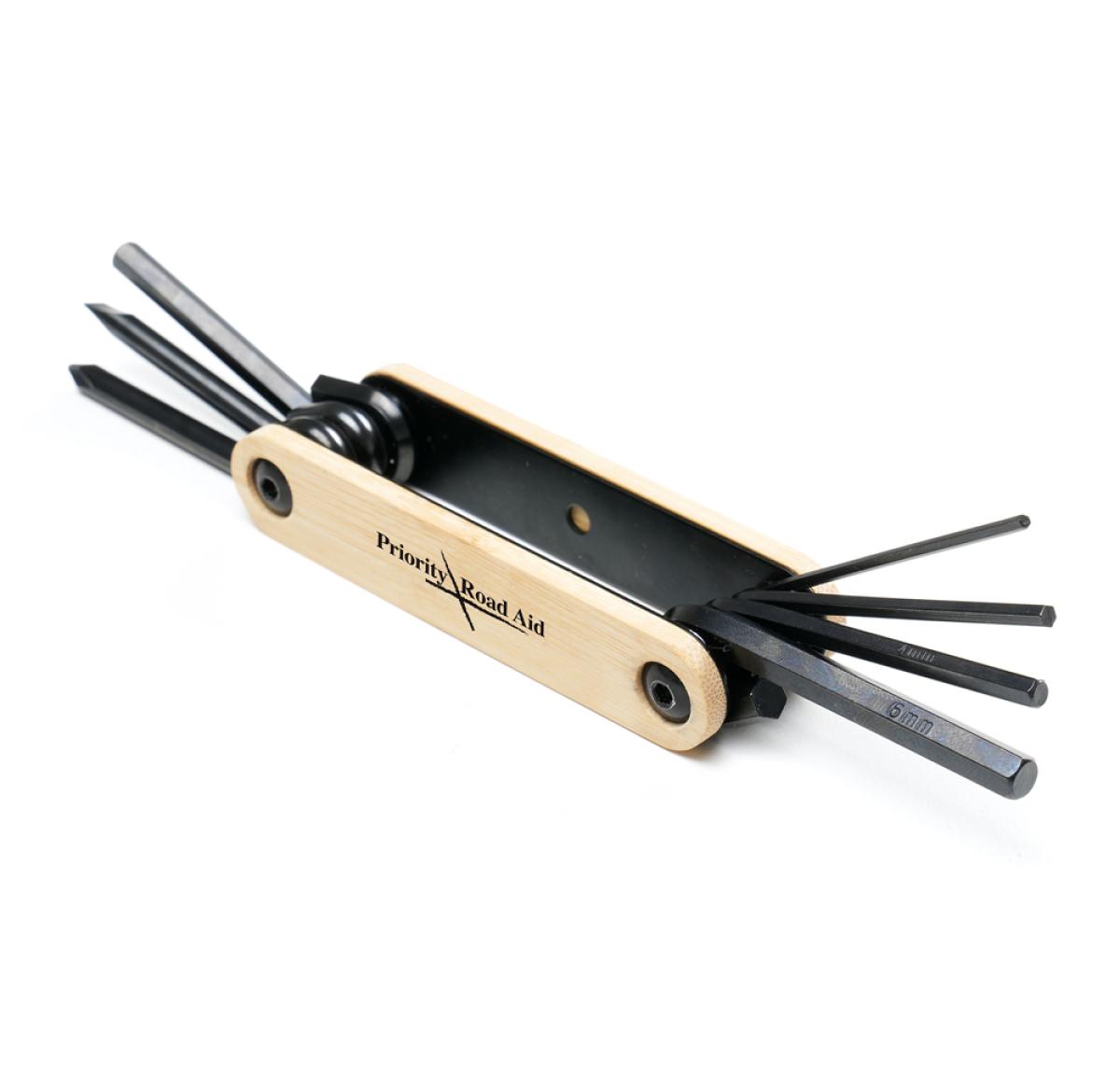 The Bike Repair Tool Kit is a compact and practical multi-tool designed for cyclists on the go. Featuring carbon steel tools and bamboo handle plates, it combines durability with a modern look, while offering a convenient size that fits easily into a pocket or bag. The kit includes 4 hex keys and 3 screwdriver heads to tackle quick adjustments or repairs whilst out riding. With its smooth bamboo panels providing space for custom branding, it’s an ideal promotional product for the cycling, sports, outdoor, and travel industries. Perfect for giveaways at events, races, exhibitions, and retail promotions, this bike repair kit is a useful item that recipients will appreciate and keep.