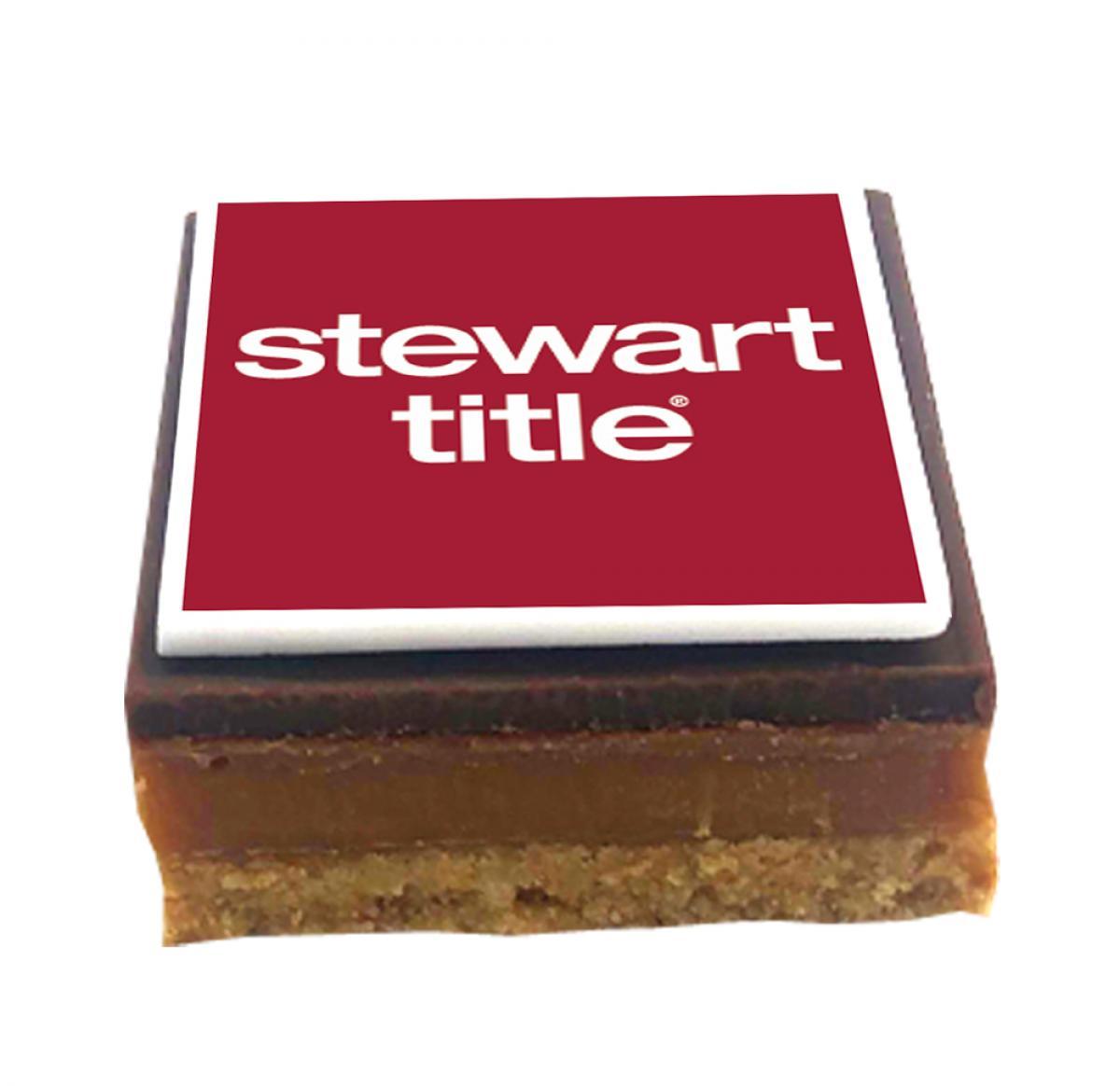 5cm Square Logo Millionaire Shortcake, individually wrapped in clear Natureflex compostable film.