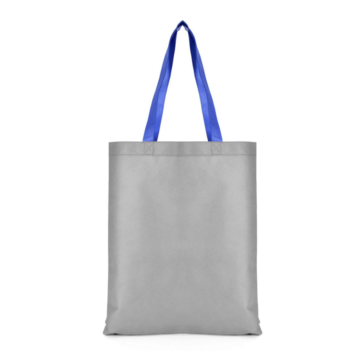 Recyclable 80gsm non woven two tone shopper with one grey side, one coloured side and short coloured carry handles. A durable yet lightweight shopper with a large personalisation area to carry your company logo.