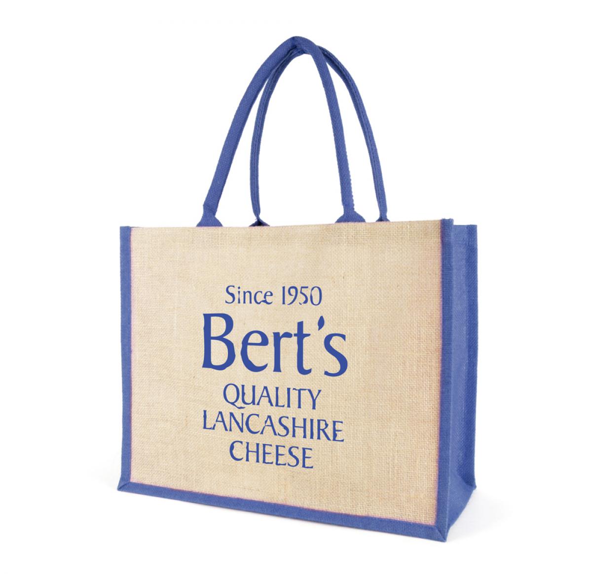 The classic jute bag; made from natural jute and in landscrape profile. Features invluded laminated backing, coloured rope handles, coloured gusset and coloured jute trim. Your durable shopping friend.