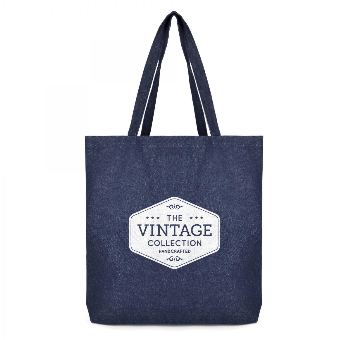 Large 340gsm denim cloth cotton shopper bag with short demim handles. This stylish portrait shopper comes complete with gusset and a extra large space for your personalisation.
