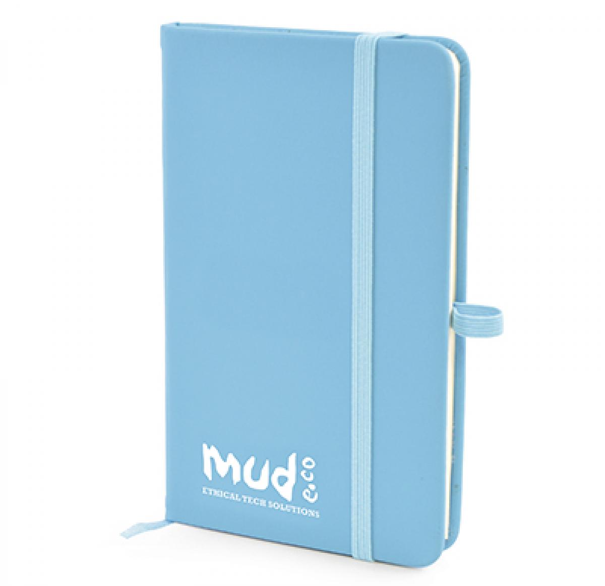 A6 PU soft finish 80sheet lined notebook with elastic closure, back pocket for securing business cards and loose notes, elastic closure and pen loop.