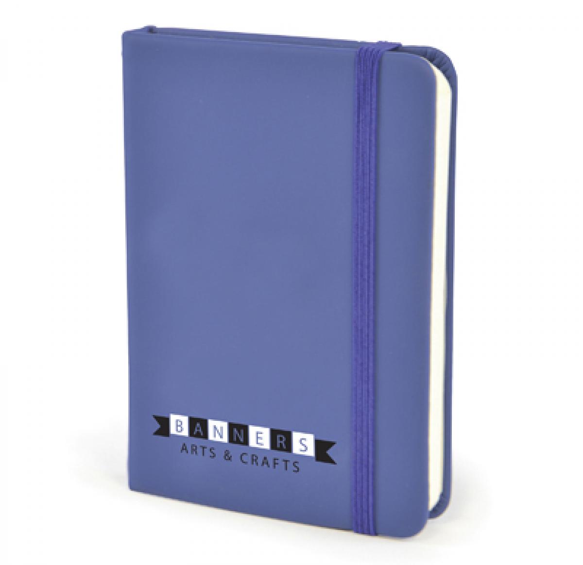 A7 PU soft finish 80 sheet lined notebook with bookmark, pocket at back for securing business cards and loose notes and a elastic closure to keep the contents securely in place.