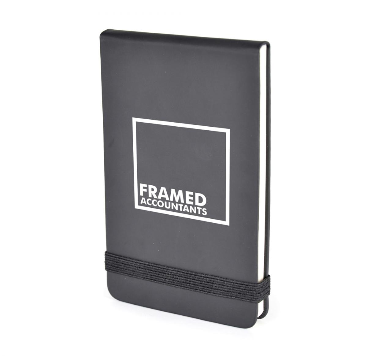 PU soft finish jotter with 80 lined sheets and coloured elastic close. A handy size o carry anywhere from the supermarket to the gym.