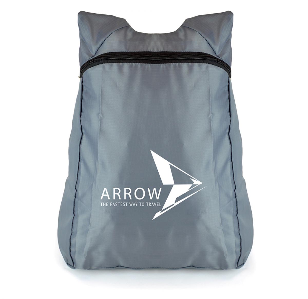 190D polyester foldaway rucksack made from water resistant ripstop fabric, supplied in its own zipped pouch for easy storage with a carry loop making it easy to handle and display
