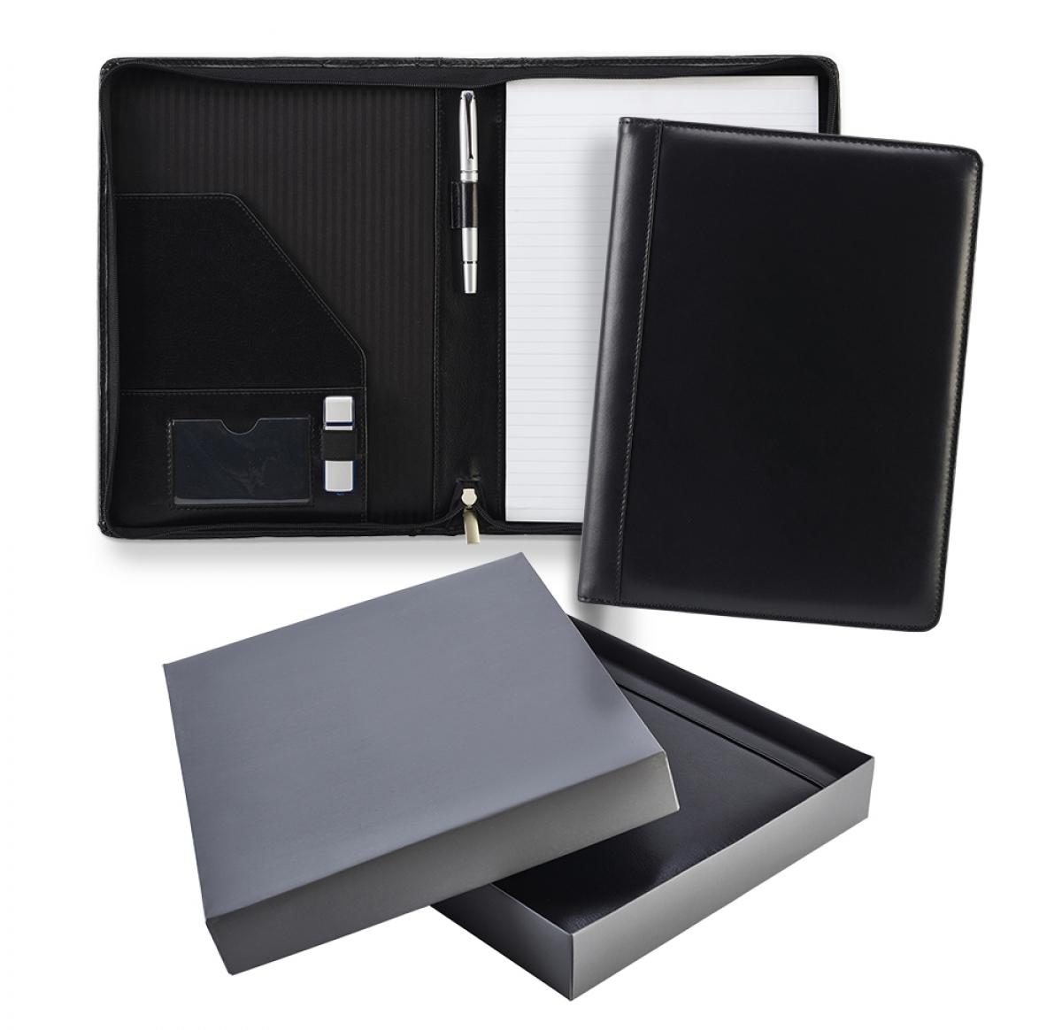 Custom Printed Leather A4 Zipped Conference Folders Black Ascot