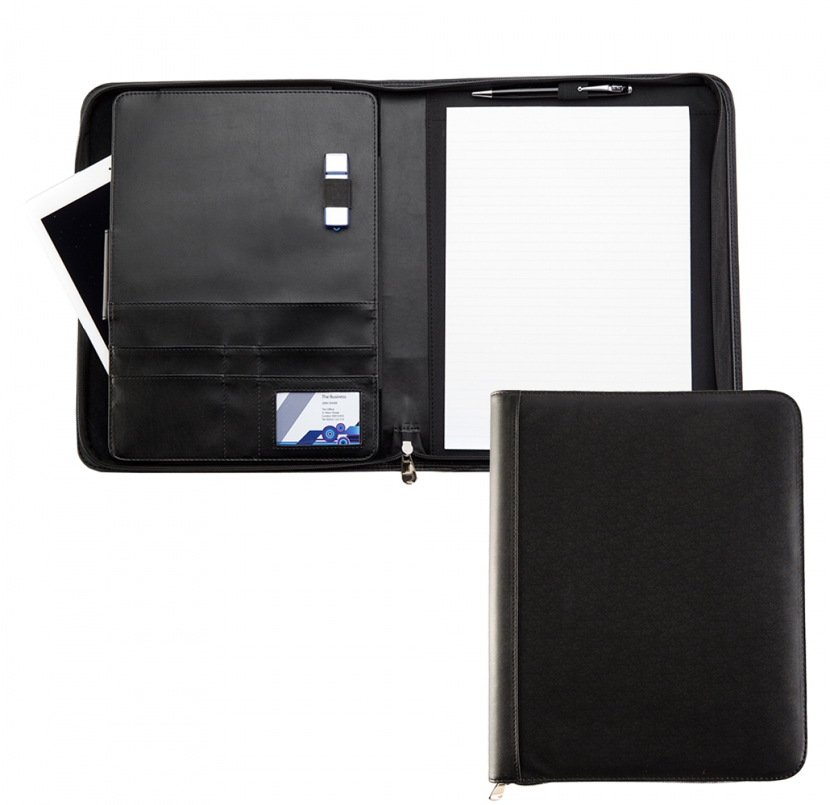 Printed Conference Folders A4 Zipped Conference Folder With Padded Tablet Pocket Black Houghton