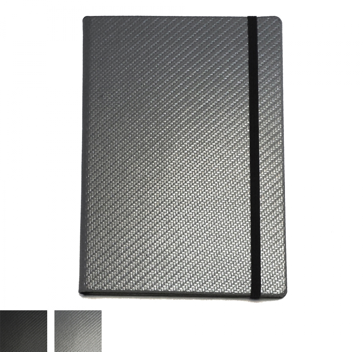 A5 Casebound Notebook in Carbon Fibre Texture made to order in the UK. Product features include Case Bound Notebook, 96 sheets, 192 pages of 70 gsm cream paper, Choose from Lined, Squared or Plain Paper, Paper is certified as sustainably sourced, Ribbon Page Marker, Elastic Strap to Close in a choice of colours, Envelope Pocket to rear inside cover, Minimum from 25 pieces, Made in the UK although for larger quantities please enquire for Far East option at price advantage.