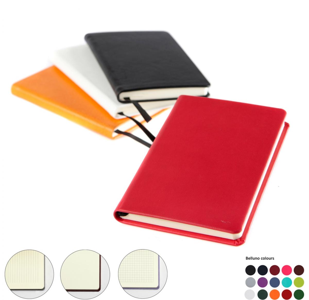 Pocket Casebound Notebook made to order in the UK finished in soft touch Belluno PU with a real leather look and feel. Belluno is available in a choice of 17 colours each with a unique colour change when embossed, making your branding distinctive and accurate even on fine detail. Product features include Case Bound Notebook, 96 sheets, 192 pages of 70 gsm cream paper, Choose from Lined, Squared or Plain Paper, Paper is certified as sustainably sourced, Ribbon Page Marker, Minimum from 25 pieces, Made in the UK although for larger quantities please enquire for Far East option at price advantage.