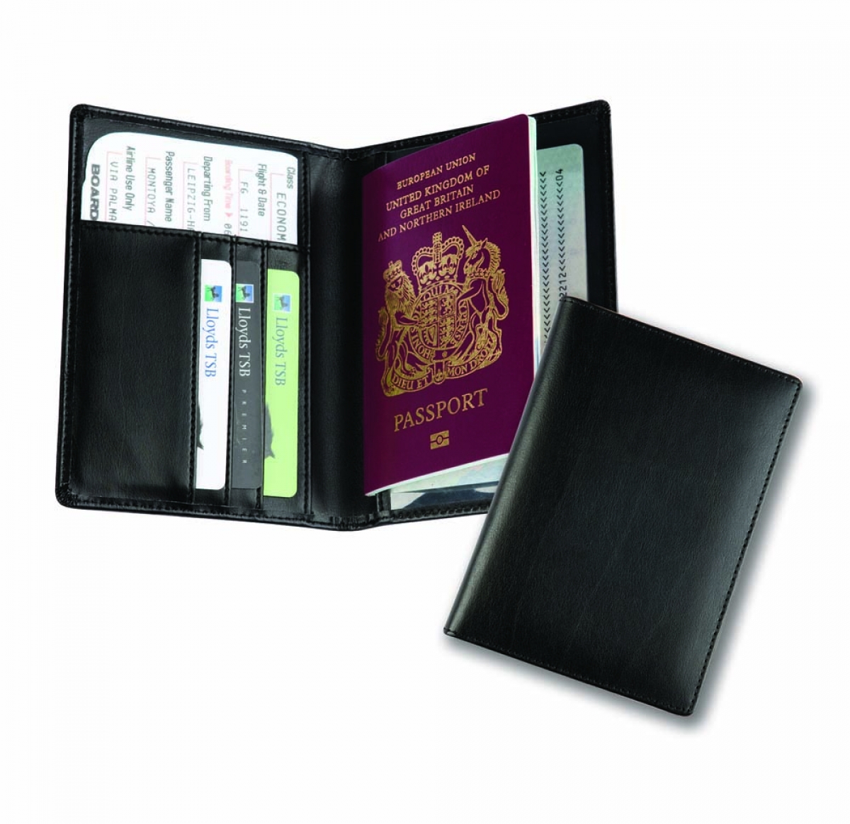 Balmoral Bonded Leather Deluxe Passport Holder finished in a Balmoral bonded leather formed from recycled leather waste bonded to form a soft material with an excellent emboss quality and a smooth grain. Product features include Clear pocket to hold passport whilst clearly showing personal details, Credit card pockets, Pocket for boarding cards, Stitchied & turned edges for a quality finish.