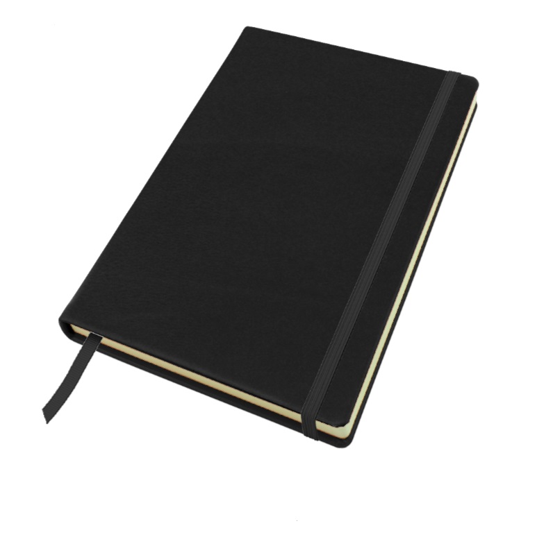 Pocket Casebound Notebook Finished in a high quality black Sandringham Nappa leather with an excellent emboss quality. Features include Case Bound Notebook, 96 sheets, 192 pages of 70 gsm cream wood free recycled paper, Choose from Lined, Squared or Plain Paper, Ribbon Page Marker, Elastic Strap to Close, choose from either a coordinating or contrasting colour, Envelope Pocket to rear inside cover, Minimum from 25 pieces.