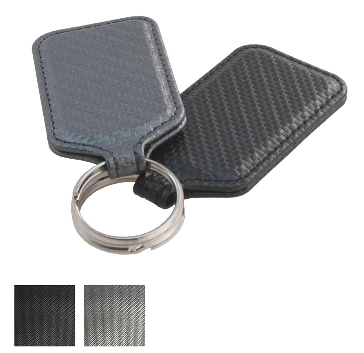 Carbon Fibre Rectangular Key Fob finished in a contemporary textured Carbon Fibre effect in a choice of black or gun metal. This material is ideal for embossing and although it can be printed the texture will show through. Product features include Stitched and Folded Quality Key Fob, Chrome Split Ring, Colour change emboss feature.