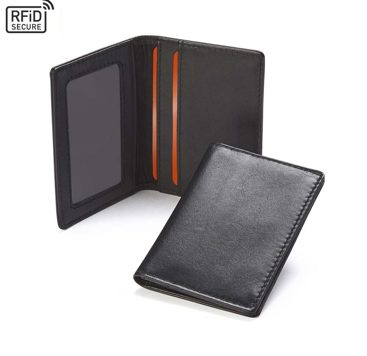 Sandringham Nappa Leather Luxury Leather Card Case, with a protective layer to prevent your chip and pin details from being stolen, finished in fine Nappa leather. Supplied in a presentation box. Product features include Framed window pocket ideal for oyster season or travel tickets, additional two card pockets to the opposite side, slim design ideal for your bag or pocket, Anti RFID Layer to prevent your cards from being cloned, black presentation lid box which can be Debossed or printed. Navy & Brown made to order, from 25 pcs many other colours available subject to minimums.
