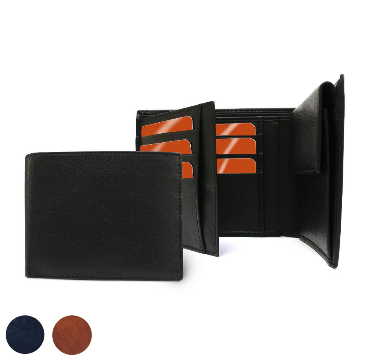 Accent Sandringham Nappa Leather Three Way Wallet, with Coin Pocket made to order with matching or contrasting stitching, black or coloured lining, Mix and match for a bespoke look. Supplied in a black gift box. Ideal for Debossed or foil blocked personalisation, full colour personalisation also available. Product features include Full Grain real leather with authentic natural grain, All edges are turned a stitched for a top quality finish, Pockets for 6 cards either side of flap, Pocket for Driving licence or ID Card on underside of flap, Pockets behind Card Pockets for receipts, Compartment with press stud to hold coins, Two pocket to rear of wallet for notes, Black gift box which can also be branded 138 x 111 x 27 mm.
