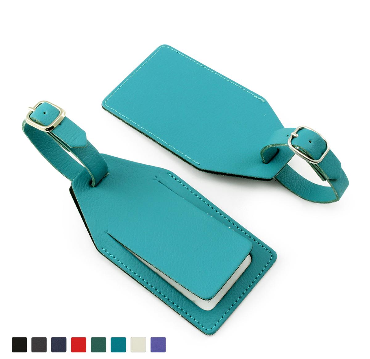 Rectangular Luggage Tag with security flap, finished in ELeather material a sustainable leather alternative made from unused leather that would otherwise go to landfill. ELeather has an excellent deboss quality and is made in the UK for a low carbon footprint. Ideal for debossed, foil blocked or full colour branding. Features include - Mix & match the strap and body colour as required, Security flap to cover the personal details card, Stitched to the perimeter in matching or contrasting thread, Choose from a chrome, gold coloured or gun metal buckle, Made to order in the UK for a low carbon foot print, Individual names or initials available please enquire.
