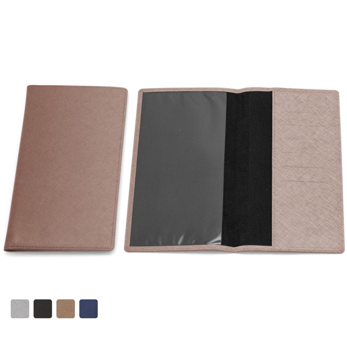 Travel Wallet with one clear and one solid pocket, finished in Saffiano PU with a contemporary cross - hatch textured finish and a metallic sheen. Saffiano is a high quality vegan PU, ideal for emboss or digital print personalisation. Product features include - One Clear interior pocket ideal to hold passports, boarding cards, tickets and currency, One PU pocket with slots for credit cards, Folded and stitched edges for a quality finish, Choice of Black, Grey or Navy interior lining, Contrast stitching or interiors available to give a bespoke look at no additional cost, REACH compliant PU.