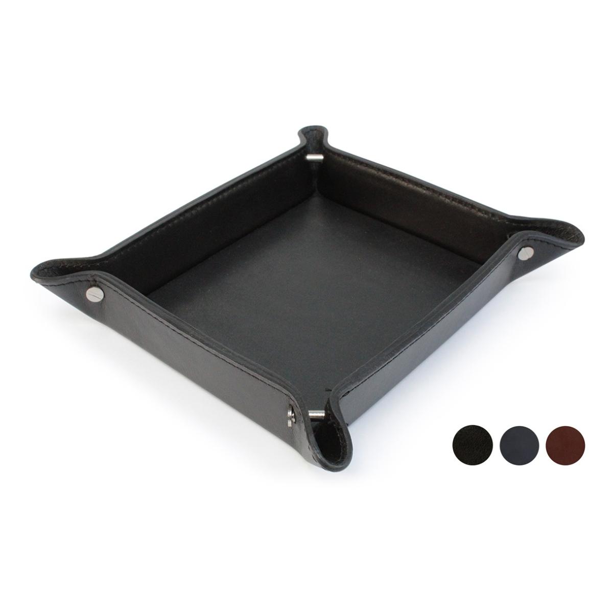 Accent Sandringham Nappa Leather Desk Tidy or Coin Tray. Available with matching or contrasting stitching for a bespoke look. Ideal for Debossed personalisation. Product features include Genuine Nappa Leather, Chrome pins to each corner, Black presentation box which can also be branded.